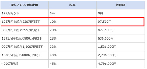 したがって、速算表(赤枠)より、本来の所得税額は265万9,246円×10%-9万7,500円=16万8,400円(100円未満切捨)であることがわかります。