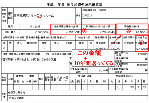 そして、後日、14万円が住宅ローン控除額として還付されます。ぜひ、みなさんもご自身の源泉徴収票で実際に計算してみてください。