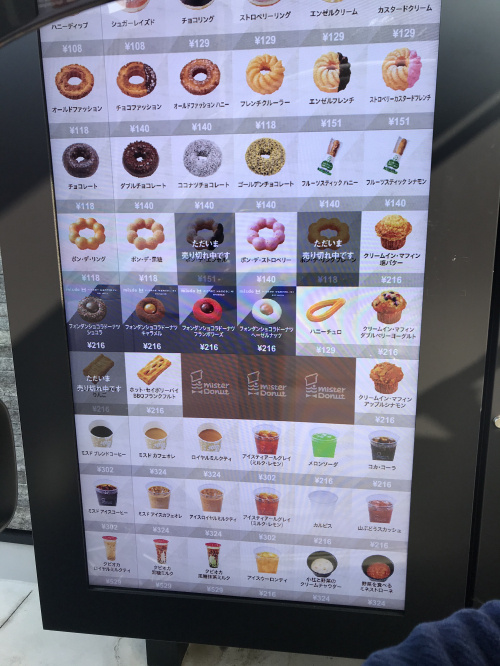 大きなパネルにドーナッツの写真が貼られててショーウィンドーでの注文のように